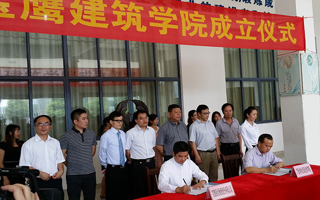 6月6日,寶鷹建筑學院在廣西水利電力職業技術學院(下簡稱“廣西水電學院”)正式揭牌成立。寶鷹集團副總裁古樸先生、廣西水電學院黨委書記盧西寧先生、院長劉延明先生等領導以及寶鷹集團員工代表和學院師生代表100多人參加了一個簡樸而有里程碑意義的簽約揭牌儀式。儀式由廣西水電學院黃偉軍副院長主持,古樸副總裁與劉延明院長簽訂合作協議,與盧西寧書記共同為寶鷹建筑學院揭牌。