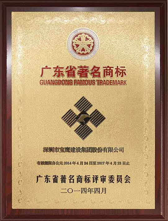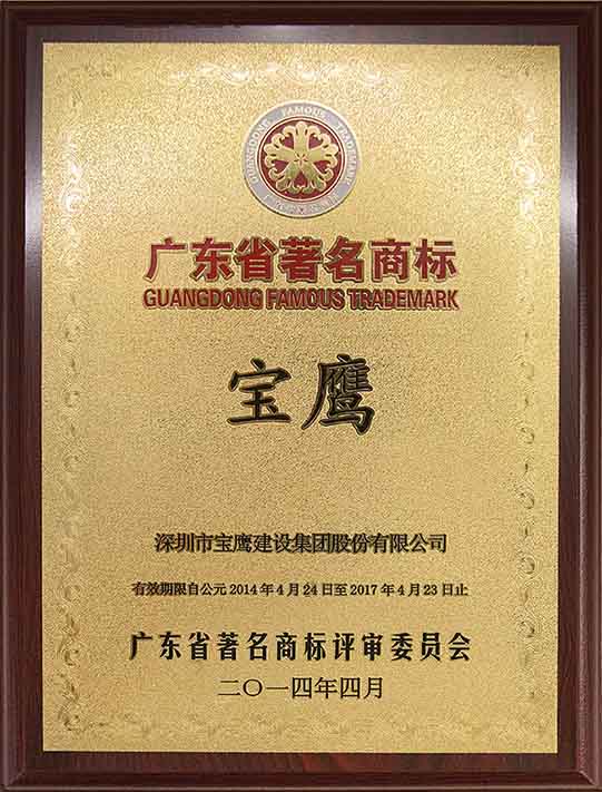 4月24日,廣東省著名商標評審委員會發出《2013年度廣東省著名商標認定和延續公告》,根據《廣東省著名商標認定和管理規定》和《廣東省工商行政管理局關于廣東省著名商標認定和管理的實施細則》的規定,經廣東省著名商標評審委員會評審通過,深圳市寶鷹建設集團股份有限公司“寶鷹”商標被認定為“廣東省著名商標”,有效期自2014年4月24日起至2017年4月23日止。與此同時,深圳市寶鷹建設集團股份有限公司“ ”商標被延續認定為“廣東省著名商標”。公司再次獲得廣東省著名商標,有利于保護公司知識產權,持續提高公司品牌知名度和市場認知度,進一步提升公司的市場競爭力。