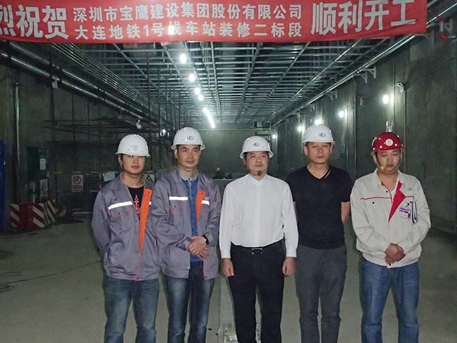 2014年6月16日,寶鷹集團副總裁古樸百忙之中來到大連地鐵一號線裝修工程工地現場進行考察指導。