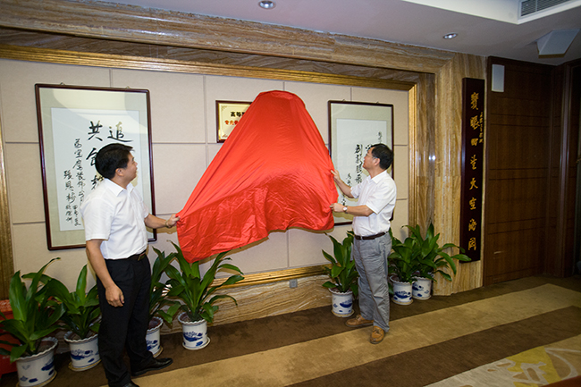 寶鷹集團(tuán)古少波董事長(zhǎng)與湖南城建學(xué)院王運(yùn)政副院長(zhǎng)共同為“高等職業(yè)學(xué)院專業(yè)骨干教師培訓(xùn)基地(國(guó)家級(jí))”揭牌