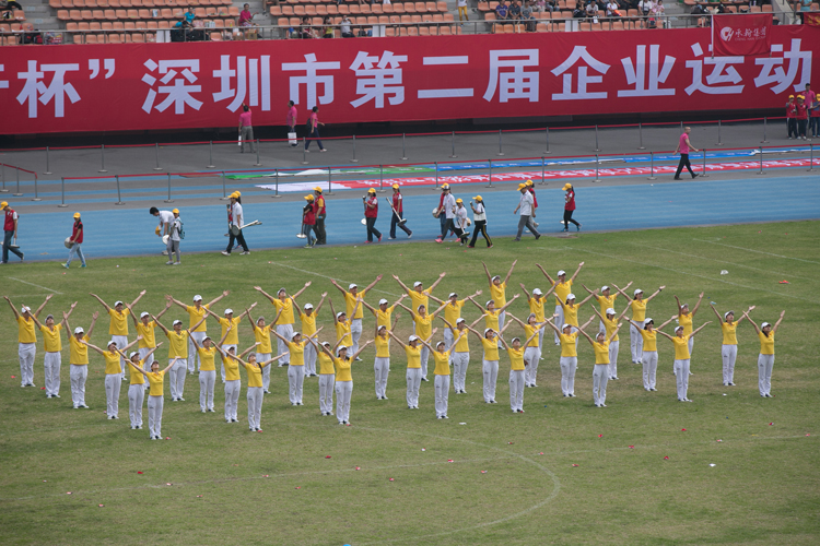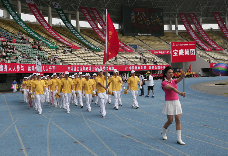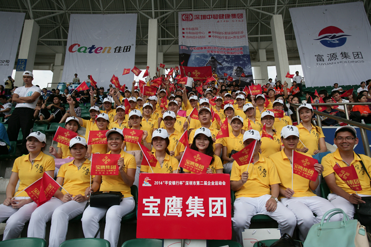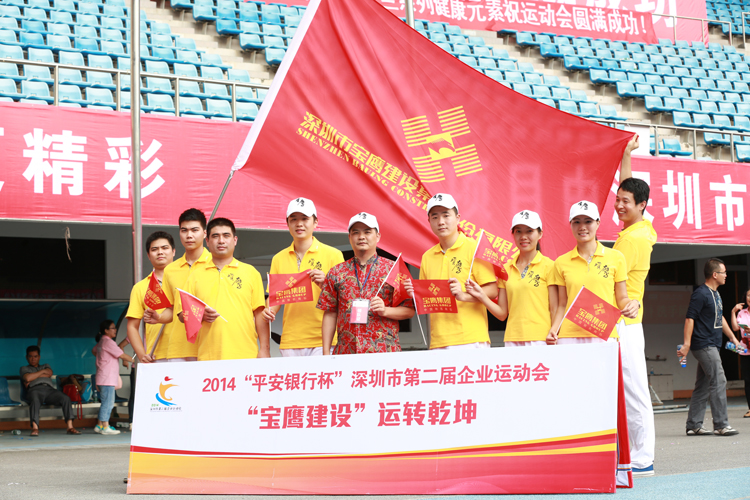 深圳企業(yè)運動會是由深圳市企業(yè)聯(lián)合會、深圳市企業(yè)家協(xié)會、《時代商家》雜志社聯(lián)合主辦的面向所有駐深企業(yè)的體育競賽盛會。本屆運動會的主題是“大家動起來,企業(yè)更精彩?!边\動會共設(shè)置比賽項目29項,開幕式當(dāng)日設(shè)置了廣播體操等集體項目、男子100米等田徑項目和運轉(zhuǎn)乾坤等趣味比賽項目。寶鷹集團(tuán)的運動健兒們參加了入場方陣、廣播體操和運轉(zhuǎn)乾坤三個項目。