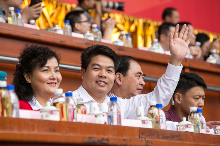 寶鷹集團(tuán)古少波董事長在主席臺向運動健兒揮手示意