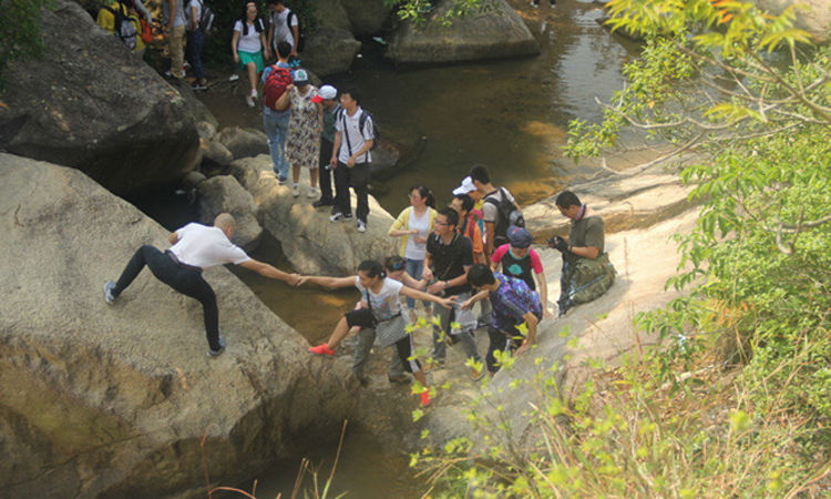 早上九點,寶鷹集團健兒與中建南方同仁于小梅沙會齊后,便在領隊的帶領下舉著紅旗,列著浩浩蕩蕩的隊伍朝馬巒山進發。馬巒山屬于尚未完全開發的郊野登山資源,雖然風景清幽,令人流連忘返,然而卻有道路指示不明確、路況較差等缺點。盡管如此,寶鷹集團和中建南方的健兒們絲毫沒有膽怯,也無一人中途退出,眾人一路互幫互助,彼此打氣,靠著頑強的意志和團結合作的精神,說說笑笑身邊事,欣賞欣賞如畫景。經過漫長的跋涉,隊伍于中午一點抵達本次行程的終點——隱匿在群山中的村落光背村。在眾人皆筋疲力盡地抵達光背村后,健兒一秒變“廚娘”,大家又在農家樂的廚房里忙活著準備豐盛的午餐。不及準備齊全,餓壞的眾人就狼吞虎咽地依次享用了炒青菜、炒雞塊、炒鴨子和燉魚等原生態美味。歡笑聲、祝酒聲等各種聲音此起彼伏,回蕩在古老的村落中,直到用完這難得的一餐,重新踏上返程的旅途。