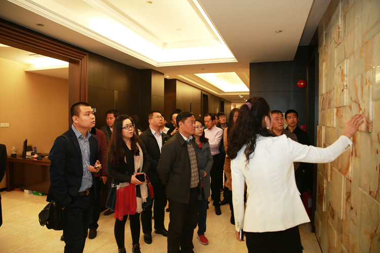 考察團一行在參觀寶鷹集團總部時了解建筑裝飾工藝