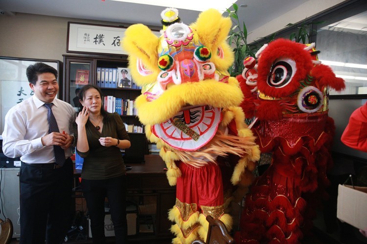 公司材料采購(gòu)部同事舞著醒獅踏著鑼鼓點(diǎn)兒穿梭在辦公室間向集團(tuán)領(lǐng)導(dǎo)和各部門同事拜年,陡然提升了寶鷹集團(tuán)的節(jié)日氣氛;行政綜合部同事披著憨態(tài)可掬的“喜羊羊”亦穿梭來(lái)去,將羊年的“羊”氣播撒在寶鷹集團(tuán)。領(lǐng)導(dǎo)班子的新春座談會(huì)嚴(yán)肅活潑,為寶鷹集團(tuán)的羊年發(fā)展奠定了氣氛。