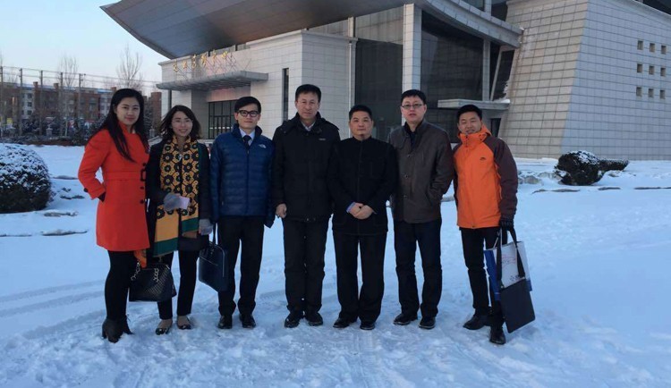 寶鷹集團古樸副總裁(右三)、吳義課總裁助理(左三)一行與黑龍江建筑職業技術學院相關領 導合影