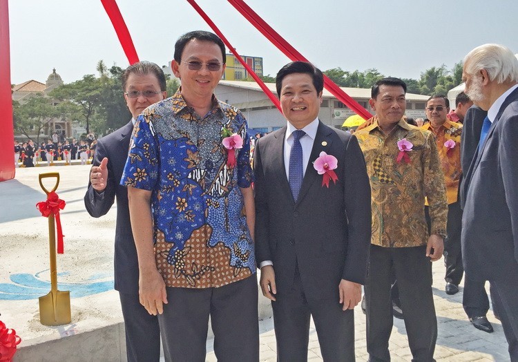 印尼三軍總司令MOELDOKO上將(中)和熊德龍董事長、古少明主席在奠基儀式現場