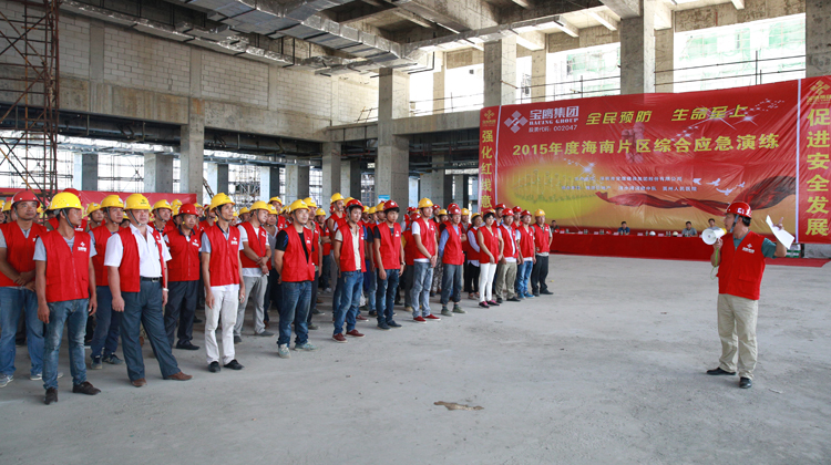 6月8日,寶鷹集團(tuán)2015年度海南片區(qū)綜合應(yīng)急演練于寶鷹集團(tuán)海南清水灣雅居樂(lè)項(xiàng)目部正式舉行。據(jù)了解,此次應(yīng)急演練的參與者主要來(lái)自寶鷹集團(tuán)海南片區(qū)的三亞紅樹林酒店項(xiàng)目、三亞美麗之冠酒店項(xiàng)目、瓊海翠堤灣項(xiàng)目、海南清水灣雅樂(lè)居項(xiàng)目、海南分公司其他項(xiàng)目部及雅樂(lè)居房地產(chǎn)開發(fā)有限公司海南公司、海南陵水縣清水灣消防中隊(duì)等單位,近200人。寶鷹集團(tuán)總工程師王建國(guó),雅居樂(lè)房地產(chǎn)開發(fā)有限公司海南公司副總經(jīng)理陳玉民以及各項(xiàng)目部代表參加了此次綜合應(yīng)急演練。