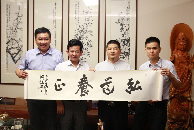 合影(左二為中國建筑裝飾協(xié)會總經(jīng)濟(jì)師、中裝新網(wǎng)CEO朱時均,右二為寶鷹集團(tuán)副總裁古樸,左一衛(wèi)中裝新網(wǎng)副總編輯、《中華建筑報》深圳記者站站長仰光金,右一為寶鷹集團(tuán)行政綜合部總經(jīng)理梁淞)