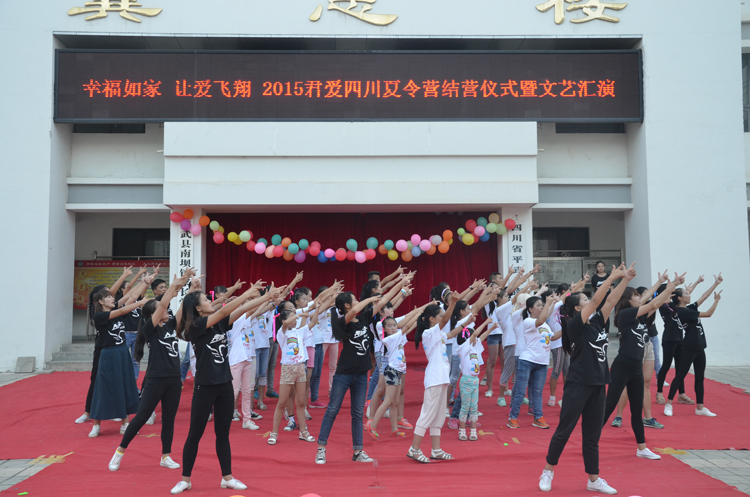 在結(jié)營(yíng)儀式的文藝匯演上,孩子們和志愿者一起,或高歌愛(ài)的奉獻(xiàn),或翩翩起舞,或表演孩子們精心準(zhǔn)備的其他節(jié)目,莫不相扶相幫,氣氛融融,現(xiàn)場(chǎng)充滿溫馨的愛(ài)意。