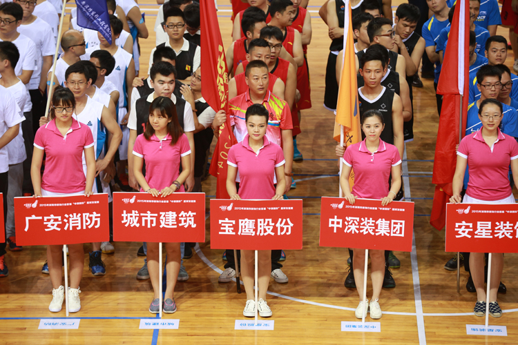 10月16日,秋陽燦爛,煦風和暢,深圳市裝飾行業首屆“中深裝杯”籃球友誼賽于深圳市體育中心籃球館盛大開幕。深圳市裝飾行業協會會長高剛,深圳市體育局副局長柯剛明,福田區人大副主任、福田區總工會主席王躍慶,寶鷹集團董事長古少波,中建南方董事長劉慧永等領導出席了開幕式,來自裝飾行業的近千名員工參加了開幕式。寶鷹集團籃球隊的十五名運動健兒將出征此次比賽,近200余位寶鷹人亦來到比賽現場,為寶鷹健兒吶喊助威。