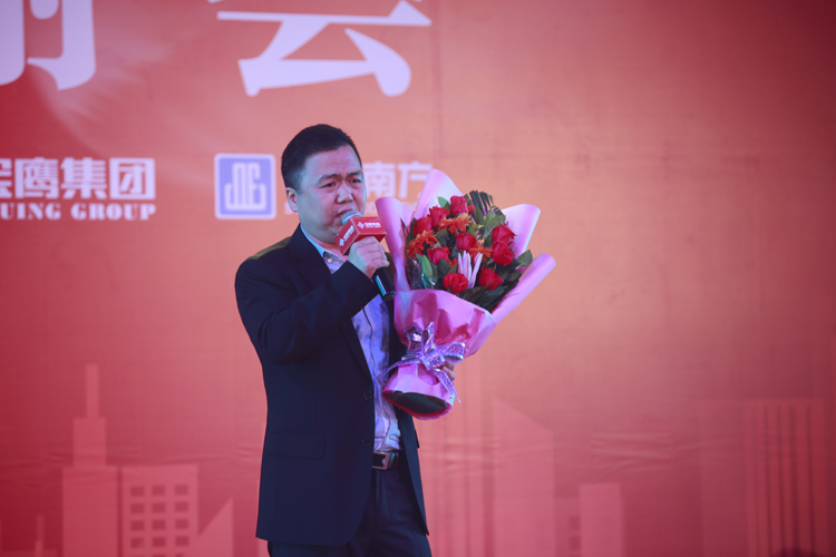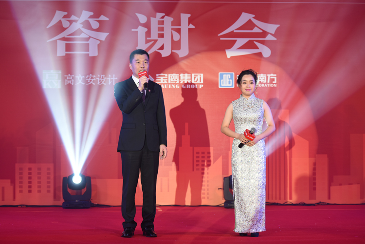 高文安設計公司設計總監常國令在致辭中表示:高文安設計融入寶鷹大家庭時間雖短,但卻明顯的感受到了寶鷹大家庭的和諧溫馨。在裝飾行業發展舉步維艱的今天,只要我們抱團發展,就一定能取得更大的勝利。中建南方總經理張玨在致辭中說:中建南方于2014年加入寶鷹大家庭,兩年來與寶鷹共同進退,一道見證了偉大的友誼。今天,我們盛邀高朋,再一次和新老朋友聚在一起暢敘友誼,共同憧憬美好未來。