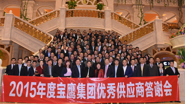 12月3日,一派浪漫歐陸風情的河源巴伐利亞莊園迎來了寶鷹集團2015年度優秀供應商答謝會。本屆優秀供應商答謝會由寶鷹集團聯合控股公司中建南方和高文安設計共同舉辦,共有來自三方的130余名優秀供應商代表參加。寶鷹集團領導、中建南方領導、高文安設計領導與130余位優秀供應商代表齊聚一堂,暢敘深情厚誼,暢談輝煌未來。