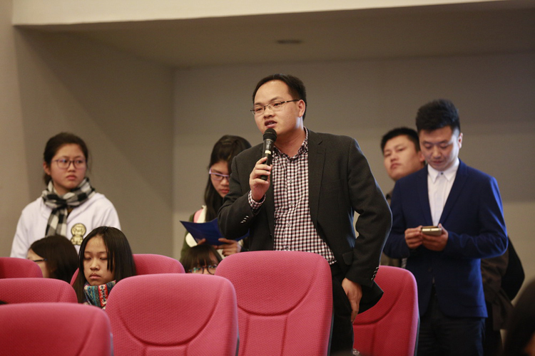 演講結尾,古樸副總裁還就學生們關心的問題進行了互動交流,現場氣氛熱烈。面對廣外商學院的教師提出的網絡大V傳播出的負能量會對學生產生誤導的問題,古樸副總裁睿智地以“發心”為關鍵點,詳細剖析了網絡負能量的方方面面,并為青年學子提出了針對性的意見。