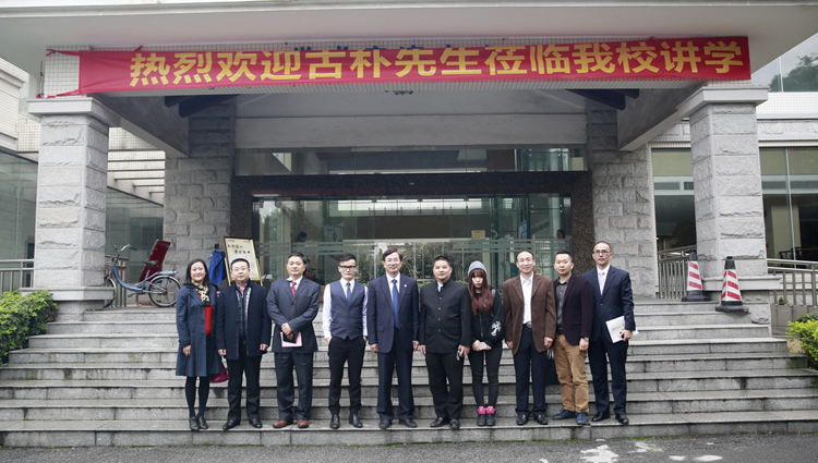 ▲合影(左五:何傳添副校長;右五:古樸副總裁;左四:吳義課總裁助理;左三:朱文仲執行院長;右三:羅海洋黨委副書記;左二:袁登華副院長;左一:梁潔副院長。)