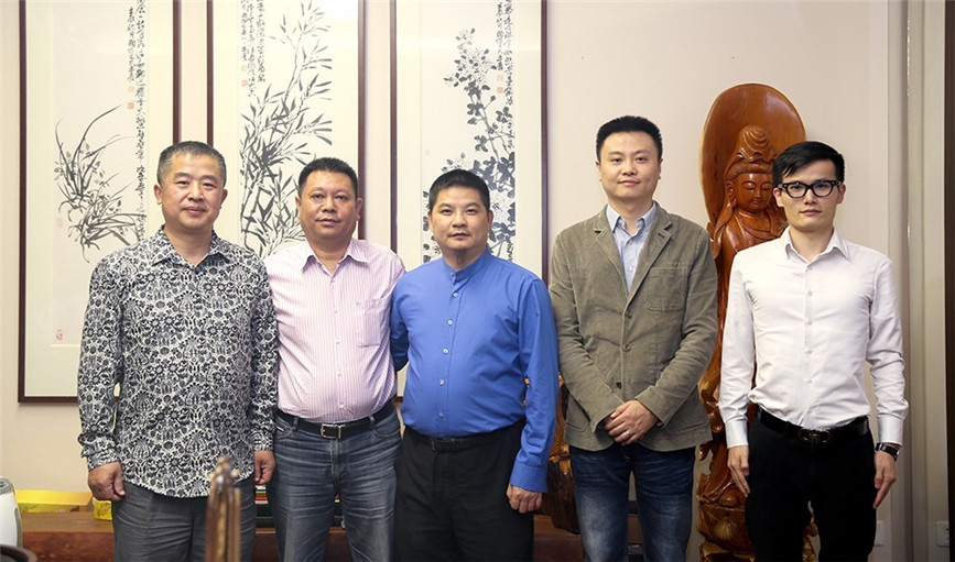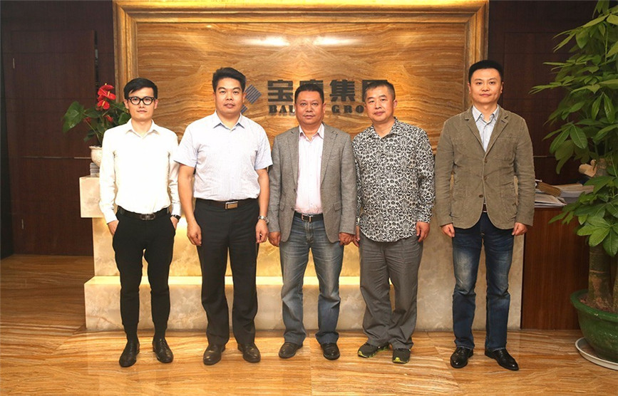 ▲中國華西企業股份有限公司廣州分公司總經理羅征祥(中)一行蒞臨寶鷹集團,受到古少波董事長(左二)的盛情接待
