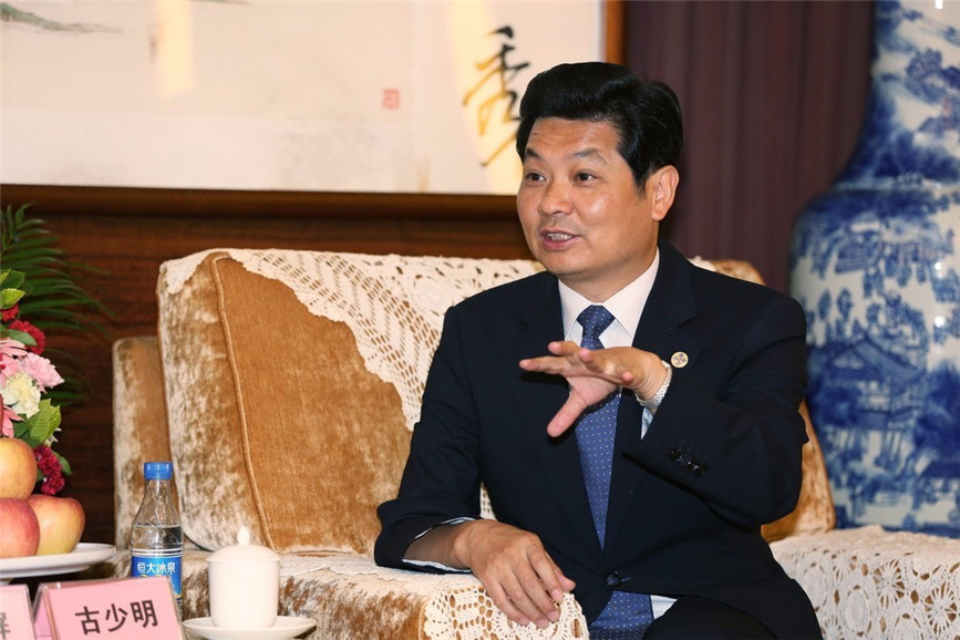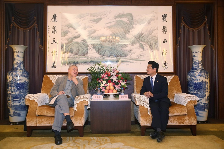 趙國屏院士在聆聽中時而認真地做著筆記,時而針對具體問題向古少明主席發問,古少明主席一一認真回答。