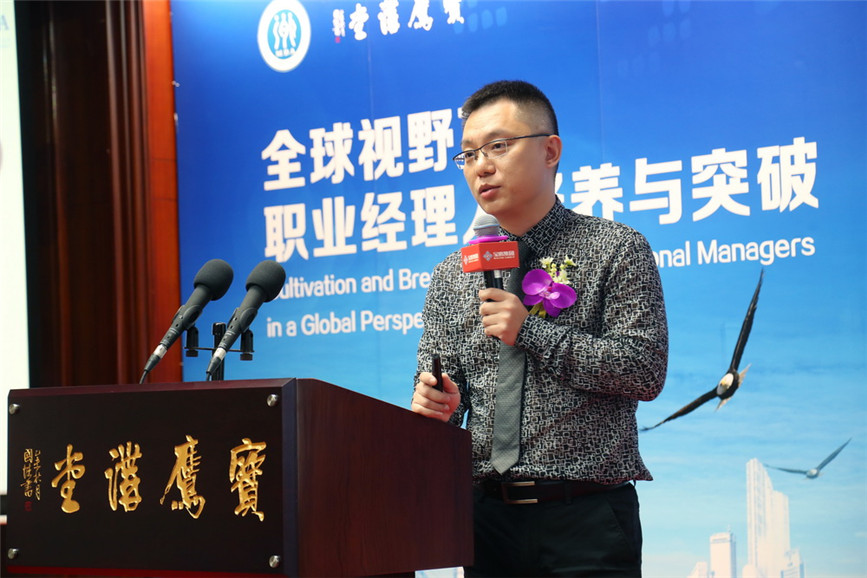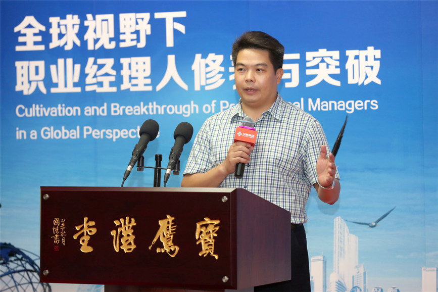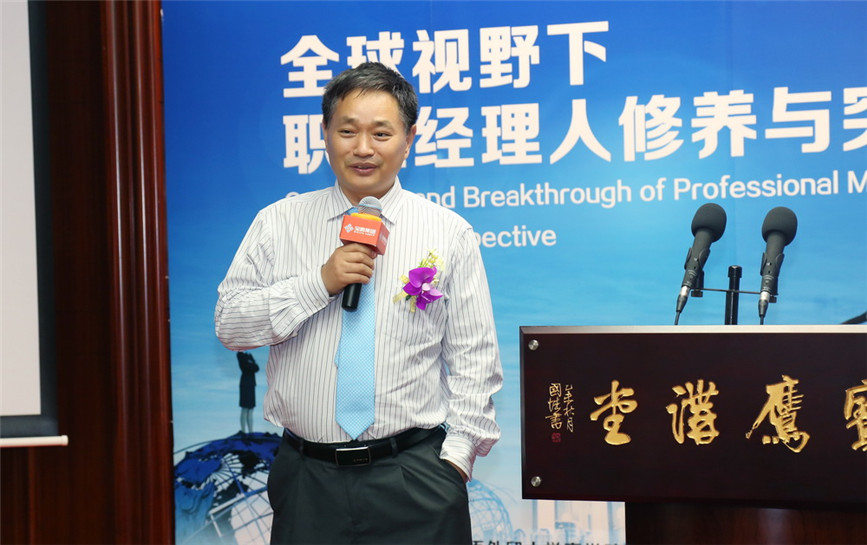 ▲ 廣東外語外貿大學商學院執行院長 朱文忠帶來《全球視野下職業經理人職業道德與社會責任》主題講座