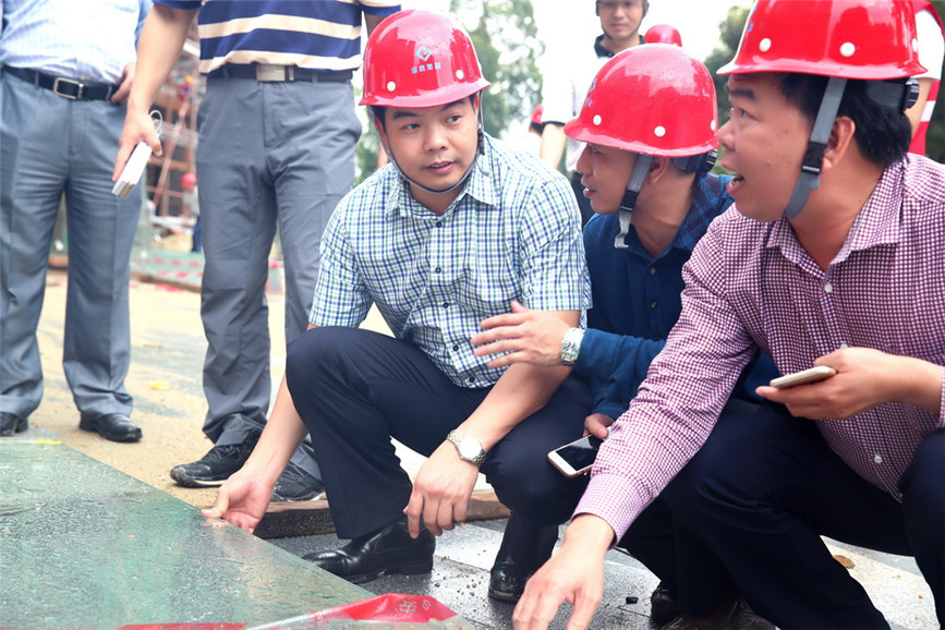 考察中,古少波董事長一行首先拜會了惠州榮燦置業(yè)投資有限公司執(zhí)行董事林文贊、副總經(jīng)理陳秀勇等甲方高層管理人員,認(rèn)真聽取了兩位高管對合作中的建議與意見,兩位高管表示,榮燦?惠州中心住宅產(chǎn)品將在五一期間公開發(fā)售,時間緊,任務(wù)重,希望寶鷹集團(tuán)能夠高效率高質(zhì)量完成項目建設(shè),但由于近期雨水天氣原因,加上榮燦?惠州中心建筑結(jié)構(gòu)較為復(fù)雜,為施工增加了一定難度。古少波董事長表示,寶鷹集團(tuán)將嚴(yán)格按照甲方要求,嚴(yán)格按照施工推進(jìn)表作業(yè),弘揚(yáng)寶鷹一貫的“工匠精神”,精益求精,力爭按時高質(zhì)量完成項目。