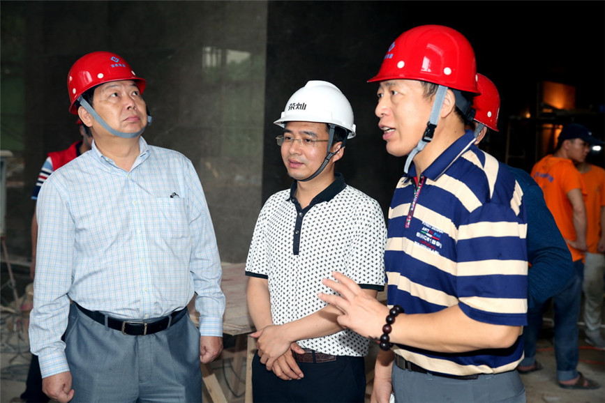 隨后,在寶鷹集團(tuán)項目部工作人員的陪同下,雙方來到施工現(xiàn)場,就工程建設(shè)的進(jìn)度問題仔細(xì)核對。在由寶鷹集團(tuán)負(fù)責(zé)施工的裙樓展示區(qū)幕墻工程施工現(xiàn)場,古少波董事長及寶鷹集團(tuán)眾高管就施工工藝、所用材料、項目施工難點(diǎn)等情況向項目部同事一一仔細(xì)詢問,并現(xiàn)場檢查安全施工事項,叮囑現(xiàn)場施工人員嚴(yán)把安全生產(chǎn)關(guān)。