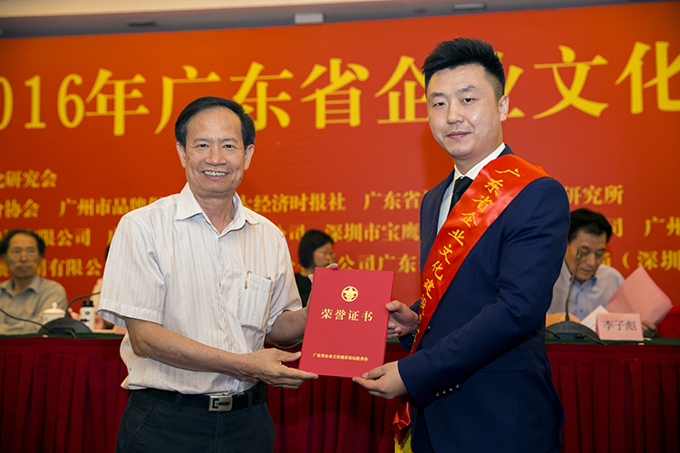 2016年廣東省企業(yè)文化建設(shè)大獎(jiǎng)?lì)C獎(jiǎng)現(xiàn)場(chǎng)(左:廣東省企業(yè)文化研究會(huì)會(huì)長(zhǎng)田豐;右:文化品牌部總經(jīng)理董賓)
