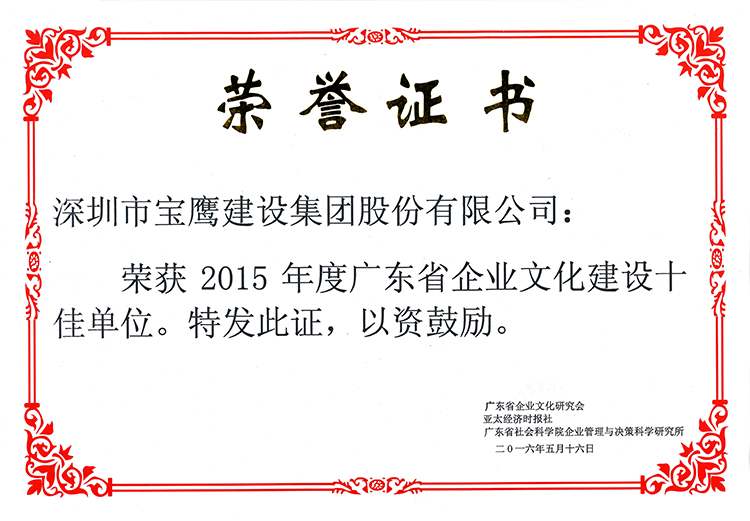 寶鷹集團(tuán)被評(píng)為“2015年度廣東省企業(yè)文化建設(shè)十佳單位”
