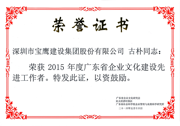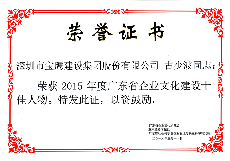寶鷹集團(tuán)副總裁古樸榮獲“2015年度廣東省企業(yè)文化建設(shè)先進(jìn)工作者”