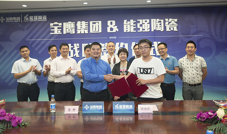 寶鷹集團副總裁古樸與能強陶瓷副總裁梁浩堂正式簽訂合作協議