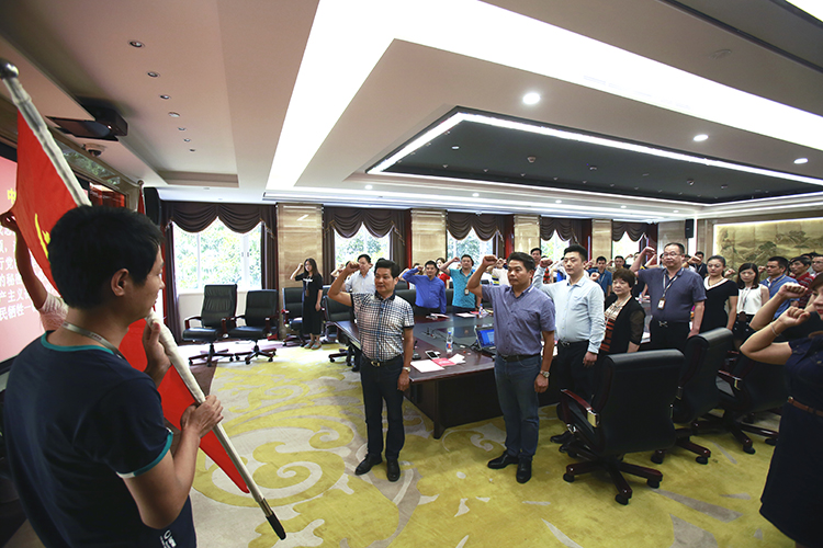 座談會由寶鷹集團黨支部成員、寶鷹股份董事長古少波主持。在莊嚴的國歌聲中,座談會正式開始。寶鷹集團黨支部書記、寶鷹集團董事局主席古少明帶領在場黨員重溫入黨誓詞。