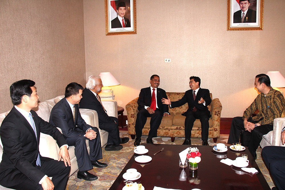 王榮會見印尼官員及企業家代表(左四為廣東省政協主席王榮、右四為印尼旅游部長阿里夫、右三為印尼投資協調統籌部長托馬斯、左三為首任印尼廣東總商會會長古少明)