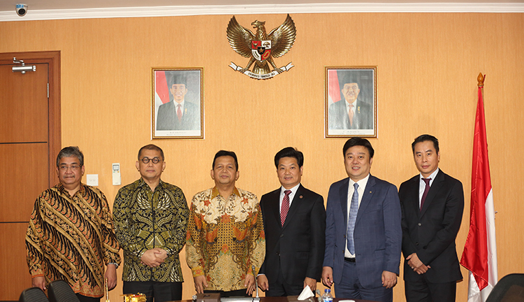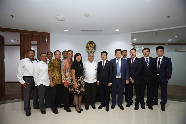 印尼公共建設與住房部Khalawi Abdul Hamid(左五)會見印尼廣東總商會代表團