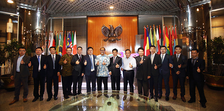 為進一步推進印尼、中國廣東兩地經貿合作進程,促進中國企業盡快融入印尼2015——2019中期改革日程和經濟發展規劃,參與印尼各項建設,10月9日起,印尼廣東商會總會長古少明攜中國知名企業中國航天科工深圳(集團)有限公司、廣東五葉神品牌集團、深圳寶鷹集團赴雅加達、萬隆兩地,與印尼公共建設與住房部、印尼投資協調統籌部、印尼經濟工業委員會、印尼國有企業國務部、印尼經濟協調統籌部、印尼海事漁業部、印尼林業部、印尼國家警察總署、印尼旅游部9部委及部分國企進行推介及商務洽談,尋求在航天科技、跨境電商、基礎設施建設、智慧城市、智能安保等領域的合作。