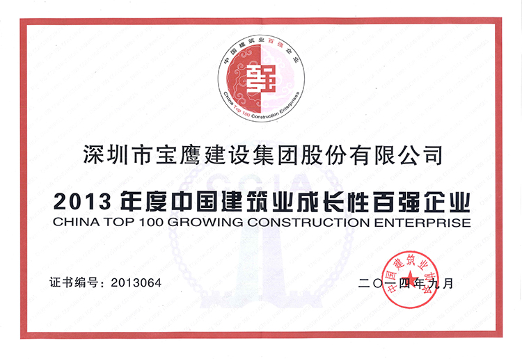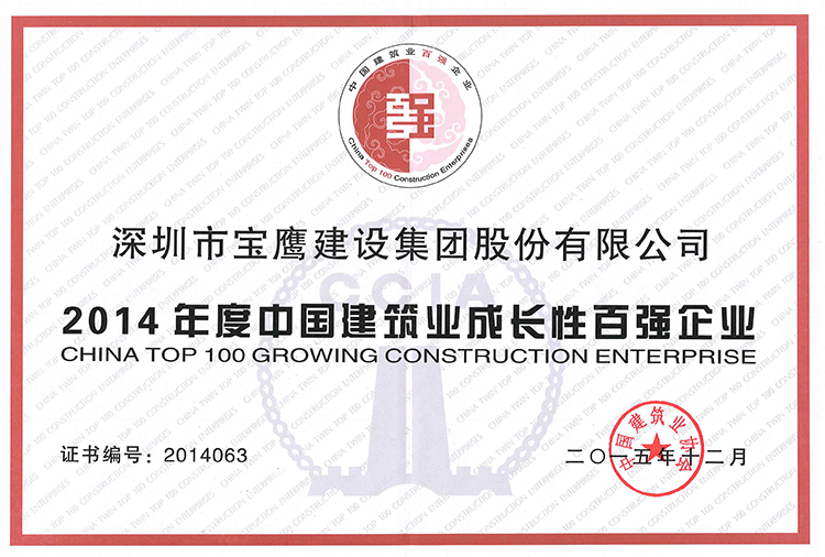 2010年——2014年,由中國建筑業協會發布的《中國建筑業雙百強企業》名單中,寶鷹集團均獲得最具成長性百強榮譽。今年首次進入競爭力榜單。在中國建筑業協會最后發布的《2015年度中國建筑業競爭力200強》名單上,80%以上的名額被大型央企、國企獲得,寶鷹集團作為榜單中為數不多的建筑裝飾類民營企業,此次入圍證明上市以來集團取得的成績得到專家和社會肯定,也顯示了集團在行業的排頭軍地位和綜合實力。