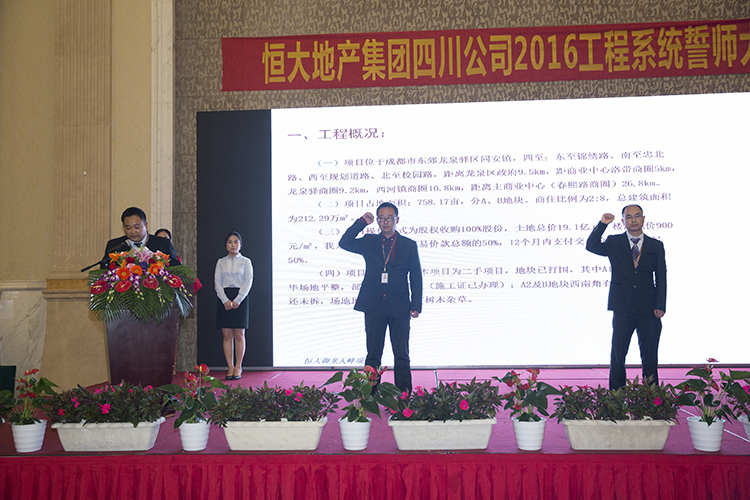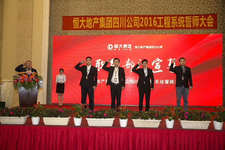 10月14日, 恒大地產(chǎn)集團(tuán)四川公司2016工程系統(tǒng)誓師大會(huì)在成都金堂縣恒大御景半島會(huì)議中心召開,恒大地產(chǎn)集團(tuán)四川公司邀請戰(zhàn)略合作伙伴代表參與誓師大會(huì),寶鷹集團(tuán)副總裁陳貴涌應(yīng)邀出席并發(fā)表致辭。