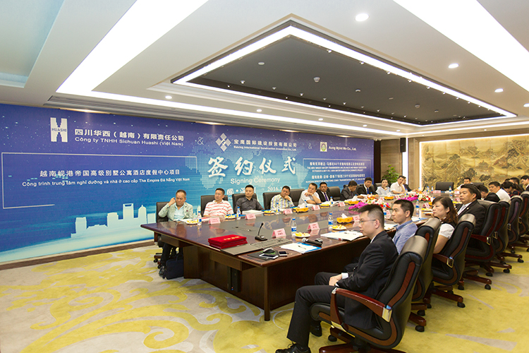 寶鷹集團(tuán)副總裁、寶鷹國(guó)際建設(shè)投資有限公司董事長(zhǎng)古樸與華西集團(tuán)越南公司總經(jīng)理羅征祥簽訂合同