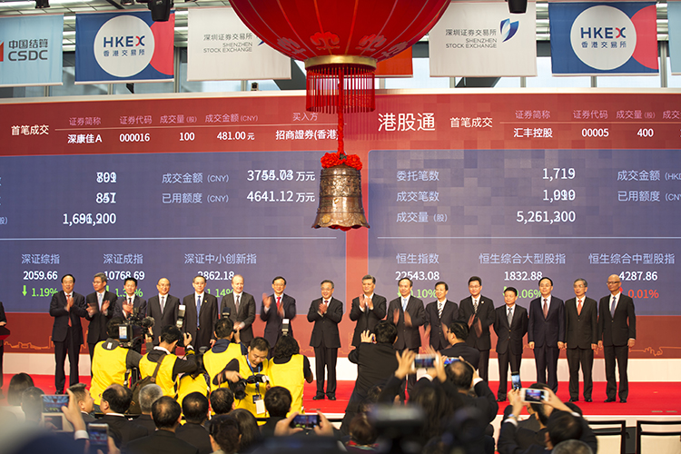 12月5日,“深港通”正式啟動,深圳香港兩地同步舉行開通儀式。廣東省委書記胡春華、證監會主席劉士余、深圳市委書記馬興瑞等領導出席并見證中國資本市場這一重大歷史事件。