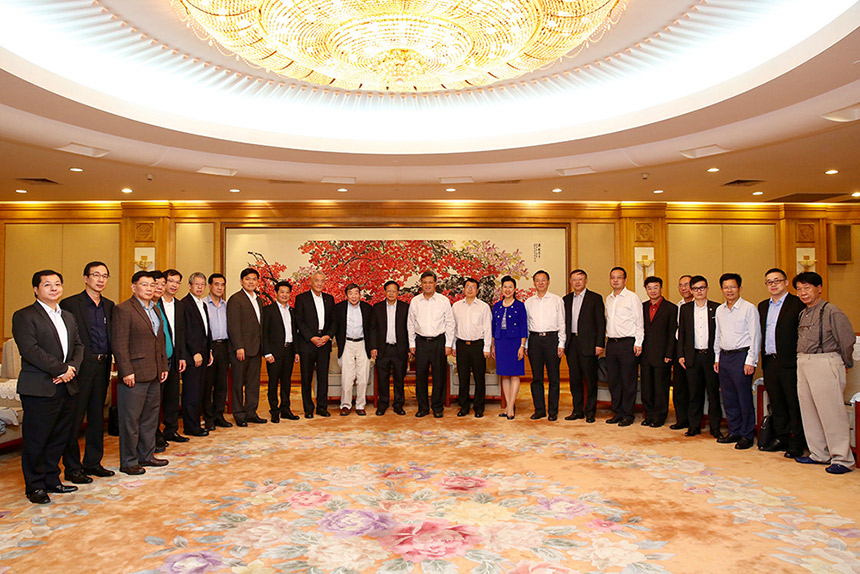 ▲ 時任深圳市委書記、現(xiàn)任廣東省代省長馬興瑞會見寶鷹集團董事局主席古少明及華人科學家一行