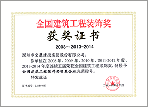 全國建筑工程裝飾獎(jiǎng)明星企業(yè)(連續(xù)多年);