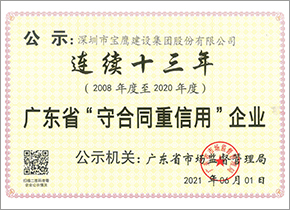 廣東省守合同重信用企業(yè)(連續(xù)多年);